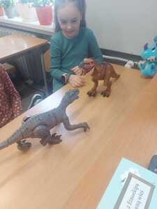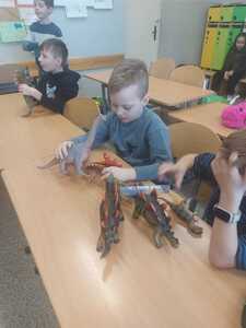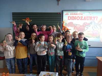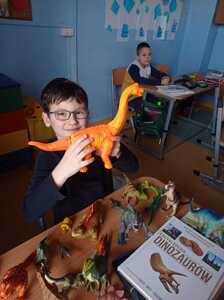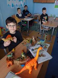 26 Lutego w klasach młodszych obchodziliśmy Dzień Dionzaura. Tego dnia uczniowie mogli zobaczyć krótki film, z którego dowiedzieli się kiedy i jak żyły dinozaury, czym się żywiły oraz dlaczego wyginęły. W kolejnej części zajęć dzieci zaprezentowały przyniesione przez siebie figurki, książki, albumy i atlasy przedstawiające różne gatunki dinozaurów, dzięki którym poznały nową terminologię: czym zajmuje się nauka paleontologia, kim jest paleontolog.