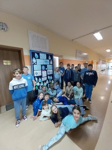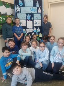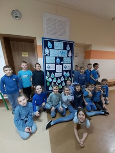 22 marca - Dzień Wody został ustanowiony przez zgromadzenie ogólne ONZ. Powodami ustanowienia tego szczególnego dnia było zwrócenie uwagi społeczeństwa na brak dostępu do czystej wody pitnej ponad 1 miliarda ludzi na Ziemi. W klasach przeprowadzono wiele ciekawych lekcji. Były filmiki promujące oszczędzanie wody, rysunki miejsc związanych z wodą, gra planszowa” Młody hydrolog”, a klasa VII podczas lekcji terenowej na punkcie widokowym w Kornowacu utrwaliła wiadomości o rzece Odrze oraz zbiorniku przeciwpowodziowym Racibórz Dolny. Na korytarzu przygotowano gazetkę tematyczną, a podczas przerw królował kolor niebieski w różnych odcieniach bo taki był na dzisiaj ustalony strój. Myślę, że zajęć o oszczędzaniu wody nigdy nie za wiele.