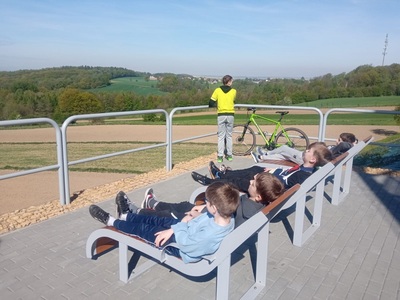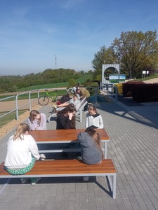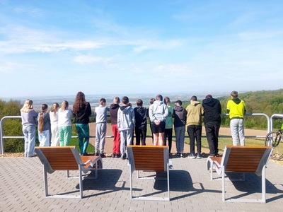 Dnia 12 kwietnia klasa VI wraz z wychowawcą w ramach lekcji wychowawczej udała się na wycieczkę terenową po najbliższej okolicy gminy. Głównym celem wyjścia było poznanie najbliższej okolicy gminy Kornowac oraz obejrzenie nowo otwartej części punktu widokowego - części tarasowej, z której rozpościera się przepiękna panorama na Płaskowyż Rybnicki.