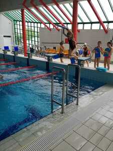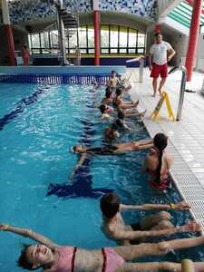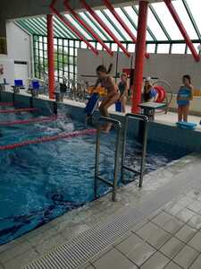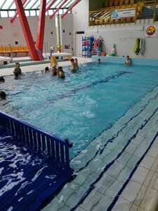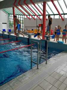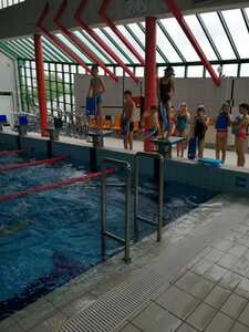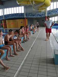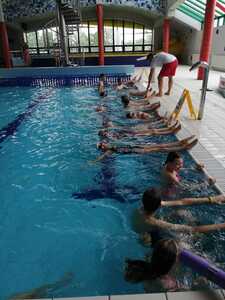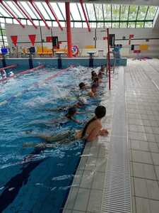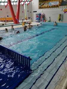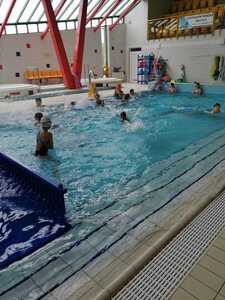Nasza szkoła realizuje kolejne lekcje wychowania fizycznego na basenie w Gorzycach. Po godzinie zajęć w których doskonalili technikę pływania kraulem i kraulem na grzbiecie uczniowie dostali chwilę czasu na zabawę, relaks w jacuzzi czy zjeżdżalnie na zjeżdżalni.