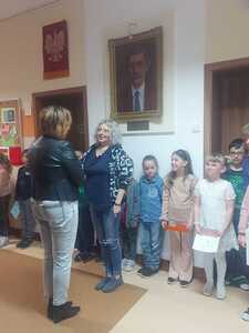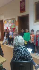 Uczniowie klasy pierwszej przygotowali krótki apel, na który zaprosili szkolną pielęgniarkę panią Marcelinę.