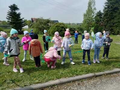 22 kwietnia to Międzynarodowy Dzień Ziemi . Celem święta jest promowanie proekologicznych postaw oraz budowanie wspólnej odpowiedzialności za Ziemię. W tym dniu przedszkolaki poznały zasady , których należy przestrzegać aby chronić naszą planetę. Każdy przedszkolak już wie , że dla dobra naszego środowiska ważne jest sadzenie drzew i pielęgnacja roślin, oszczędzanie wody i prądu, segregacja śmieci i ograniczenie zużycia plastiku oraz ruch i prawidłowa dieta. Dzieci utrwaliły sobie wszystkie te zasady podczas podchodów ekologicznych, w których brały udział wszystkie grupy. Każdy uczestnik miał do wykonania zadania – zagadki, zadania sportowe i łamigłówki o tematyce ekologicznej. Wszystkie te działania miały na celu podkreślenie, jak ważne jest nasze zaangażowanie w działania na rzecz ochrony naszej planety oraz rozbudzenie w dzieciach potrzeby dbania o naturę .