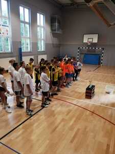 Środa 22.05. gorąco na dworze i gorąco na sali w Rzuchowie, bowiem uczniowie szkół naszej Gminy rozegrali turniej w dwa ognie. Los sprawił, że na rozpoczęciu turnieju zawyły syreny straży pożarnej, to dodało dodatkowego "smaku" tej rozgrywce. Był to turniej drużyn mieszanych, każda szkoła była zobowiązana wystawić 8 osobowe drużyny składające się z 4 dziewczyn i 4 chłopaków klas IV-VI. Cała rywalizacja przebiegała zgodnie z duchem fair play, mimo kilku trafień w głowę, atakujący zawsze zachował się godnie przepraszając swojego przeciwnika. W meczach mogliśmy zobaczyć efektowne rzuty i nieprawdopodobne uniki, nauczyciele często przecierali oczy ze zdumienia, niedowierzając temu co wyczyniają ich uczniowie. W turnieju najlepsza okazała się drużyna z Kobyli. Nasza drużyna po zaciętej walce zajęła 2 miejsce. Na 3 miejscu znaleźli się gospodarze turnieju czyli Rzuchów. A 4 miejsce zajęli uczniowie z Kornowaca, którzy zasługują na wyróżnienie, gdyż byli najmłodszą drużyną turnieju, ponieważ składała się ona wyłącznie z uczniów IV klasy.