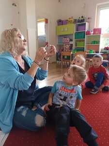 Nasze przedszkole odwiedziła pani Marcelina która na co dzień pracuje jako pielęgniarka i reprezentuje firmę Red Line. Dzieci podczas zajęć dowiedziały się o zagrożeniach jakie niosą za sobą kleszcze, oraz jak się przed nimi zabezpieczać. Przedszkolaki chętnie uczestniczyły w rozmowie. Bardzo dziękujemy Pani Marcelinie za miłe spotkanie i poświęcony czas.