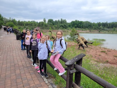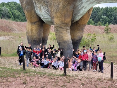 W dniu 4 czerwca 2024 r. uczniowie nasze szkoły wzięli udział w wycieczce do JuraParku w Krasiejowie🦕🦖🦈. Celem wycieczki było poznanie przez uczniów prehistorycznego świata dinozaurów. Dzieci miały okazję zobaczyć prawie 70 gatunków gadów i płazów. Uczniowie zwiedzili Pawilon Paleontologiczny, gdzie mogli stąpać po szklanej powierzchni, przez którą zobaczyli skamieniałości płazów i gadów. Wiele emocji dostarczył uczniom seans w kinie 5D a także wizyta w Oceanarium. Był też czas na wspólną zabawę na dużym placu zabaw.