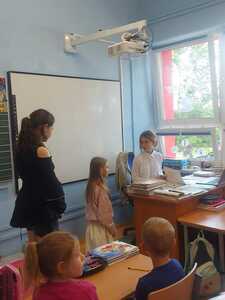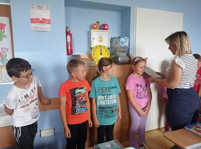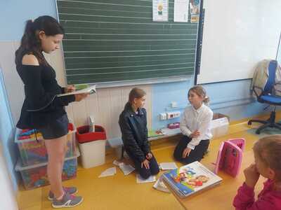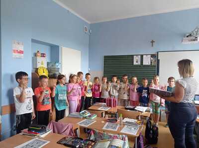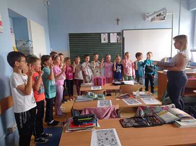 Na początku uczennice klasy V przedstawiły inscenizację, która nawiązywała do pracy w bibliotece oraz o tym jak powinno się szanować książki. Uczniowie klasy I zapoznali się z regulaminem biblioteki, sposobem wypożyczenia książek oraz dlaczego warto czytać książki. Dowiedzieli się co to takiego księga inwentarzowa oraz karta ucznia.