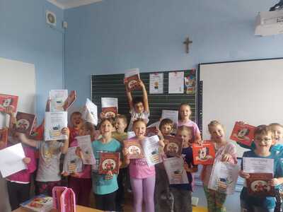 Na zakończenie skupione i poważne uroczyście przyrzekły, że będą kochać i szanować książki, korzystać z ich mądrości i sumiennie wypełniać obowiązki czytelnika. Po przyrzeczeniu nastąpiło uroczyste pasowanie na czytelnika oraz wręczenie pamiątkowych dyplomów i książeczek.