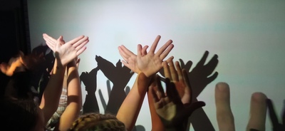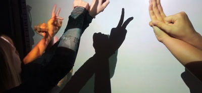 Uczniowie podczas lekcji odkryli, że posługując się dłońmi i ich cieniem można wykreować niesamowite widowisko.