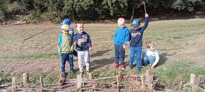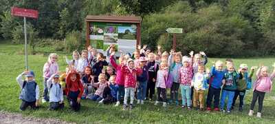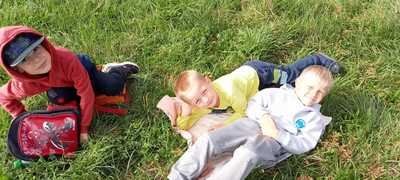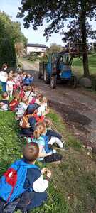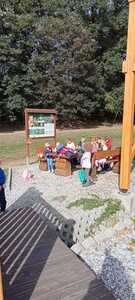 Jesień to niezwykle kolorowa pora roku pełna cudownych widoków. Po drodze dzieci uczyły się nazywać napotkane drzewa, zbierając ich owoce i liście. Mijaliśmy także stado danieli i łań, które uciekły przed nami w popłochu. Dużą atrakcją okazały się przejeżdżające maszyny rolnicze wzbudzając ogromne zainteresowanie wśród najmłodszych.