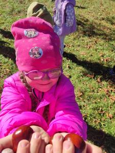 W pierwszym dniu października dzieci wybrały się na spacer w poszukiwaniu kasztanów.