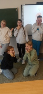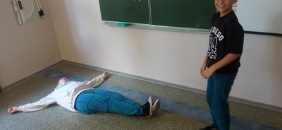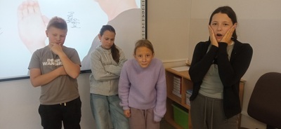 Szóstoklasiści podczas zajęć teatralnych zgłębiali tajniki pantomimy.