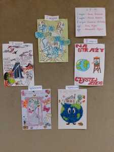 W piątek 12.X odbyło się uroczyste rozdanie dyplomów i nagród w konkursie plastycznym na Plakat z okazji sprzątania świata. Wpłynęło wiele prac, które wywieszone były na korytarzu szkolnym. Nagrody dla wszystkich laureatów zostały zakupione dzięki bonie, który wygraliśmy ( wyróżnienie specjalne) w Ogólnopolskiej Zbiórce Baterii. Nagrody otrzymali: