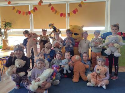 Pluszowy miś to najlepszy przyjaciel każdego dziecka, maskotka na dobre i złe chwile. Można go przytulić, a nawet powiedzieć mu o czymś ważnym. Z tej okazji przedszkolaki uczestniczyły w obchodach " Dnia Pluszowego Misia". Każde dziecko przyszło do przedszkola ze swoim ulubionym misiem. Można było zobaczyć misie małe, średnie, duże, brązowe, różowe, białe itd. Wszystkie były śliczne i wyjątkowe. Dzieci zostały zaproszone do wspólnej zabawy ze swoimi misiami, poznały historię pluszowego misia. Były również prowadzone zajęcia związane z misiami m.in. taniec z misiem, zabawy ruchowe. Dzieci wykonały również prace plastyczne. Przedszkolaki poznały również misiów – bohaterów bajek i książek.