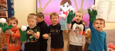 Najbardziej przypadły dzieciom do gustu zajęcia z teatru lalki, gdzie mogły zobaczyć różne rodzaje lalek, dotknąć ich, pobawić się nimi. Każdy przedszkolak dostał przygotowaną pacynkę, którą musiał ozdobić według własnego pomysłu. Dzięki temu sala została wypełniona księżniczkami, rycerzami, super bohaterami i wróżkami. Dzieci miały super zabawę.