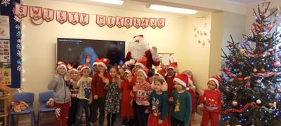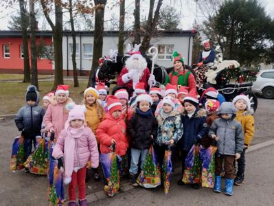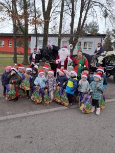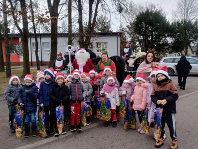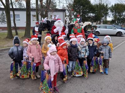 Dokładnie 6 grudnia rankiem nasze przedszkole odwiedził bardzo miły i długo oczekiwany gość. W tym roku przybył bryczką zaprzężoną końmi. To nie mógł być nikt inny tylko- Święty Mikołaj. Spotkanie przebiegało w bardzo przyjemnej atmosferze. Przedszkolaki recytowały wiersze, śpiewały piosenki. Święty Mikołaj obdarował wszystkie dzieci wspaniałymi prezentami oraz odwiedził każdą grupę w swojej sali i rozmawiał z dziećmi. Święty Mikołaju dziękujemy za przybycie i do zobaczenia za rok !