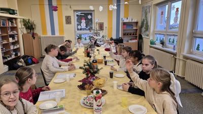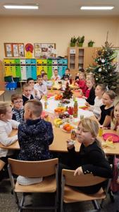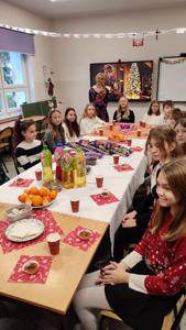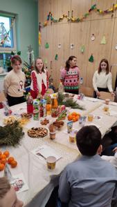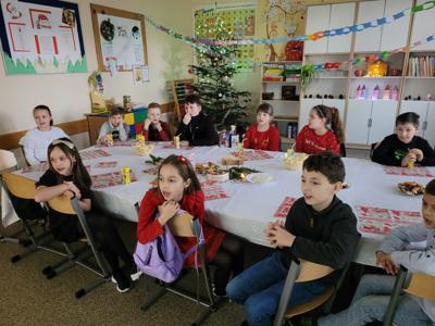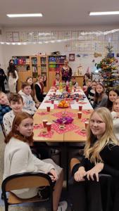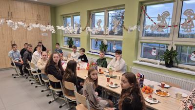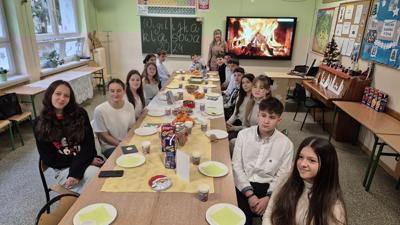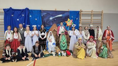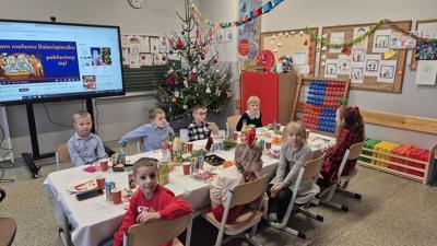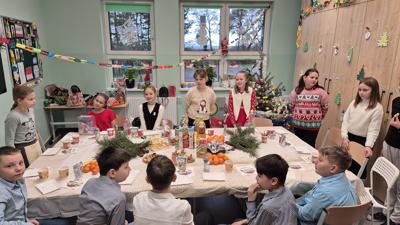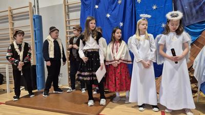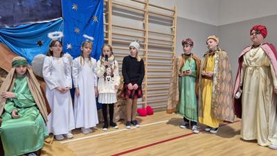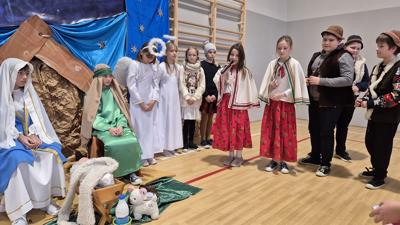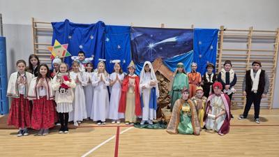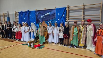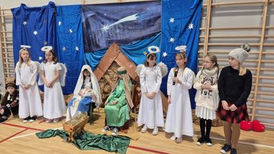 Ostatni dzień przed przerwą świąteczną był już całkowicie poświęcony tematyce świątecznej. Od rana dało się odczuć magiczną, świąteczną atmosferę - nie brakło uśmiechów, uścisków, a nawet wzruszeń. Odświętnie ubrani uczniowie przygotowywali w swoich klasach uroczyste wigilie, żeby później móc przełamać się ze sobą oraz swoimi wychowawcami opłatkiem i złożyć najserdeczniejsze życzenia. Na stołach pojawiły się świąteczne potrawy, a w całej szkole można było usłyszeć wesołe kolędowanie. Po wigiliach uczniowie mieli okazję przenieść się w czasy narodzin Chrystusa. JASEŁKA🌟 przygotowane przez s. Danutę, w wykonaniu uczniów klasy 5 wprowadziły nas w ciepły, świąteczny nastrój. Scenki z życia nowonarodzonego dzieciątka, przeplatane były pięknie zaśpiewanymi kolędami i pastorałkami. Przedstawienie spotkało się z wielkim uznaniem całej społeczności szkolnej, o czym świadczyły gromkie brawa, jakie artyści otrzymali po występie.