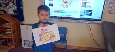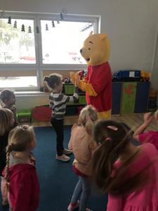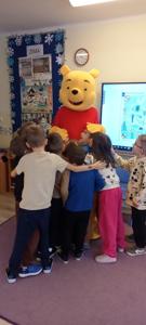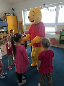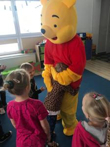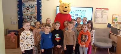 Kubuś Puchatek to jedna z tych bajek, która do dziś bawi kolejne pokolenia czytelników. Bohater stworzony przez Alana Alexandra Milne’a ma nawet swoje święto - Dzień Kubusia Puchatka, które obchodzimy 18 stycznia w rocznicę urodzin pisarza. Autor wykreował magiczny świat baśni z takimi bohaterami Stumilowego Lasu jak pełen energii Królik i Tygrysek, spokojny i lękliwy Prosiaczek, mądra Sowa, opiekuńcza Kangurzyca czy pocieszny, choć wiecznie smutny Kłapouchy. Dziś cała ta gromadka, z uwielbiającym miód Kubusiem na czele, są jednymi z najpopularniejszych bohaterów bajek. W naszym przedszkolu dzieci obejrzały prezentację, której celem było przybliżenie postaci Kubusia Puchatka i jego przyjaciół. Odbył się też krótki quiz podsumowujący wiadomości o książce. Nie zabrakło również przeczytania fragmentu książeczki, oraz prac plastycznych i kolorowanek. Na koniec zdjęcie z Kubusiem Puchatkiem, który odwiedził wszystkie grupy przedszkolne.