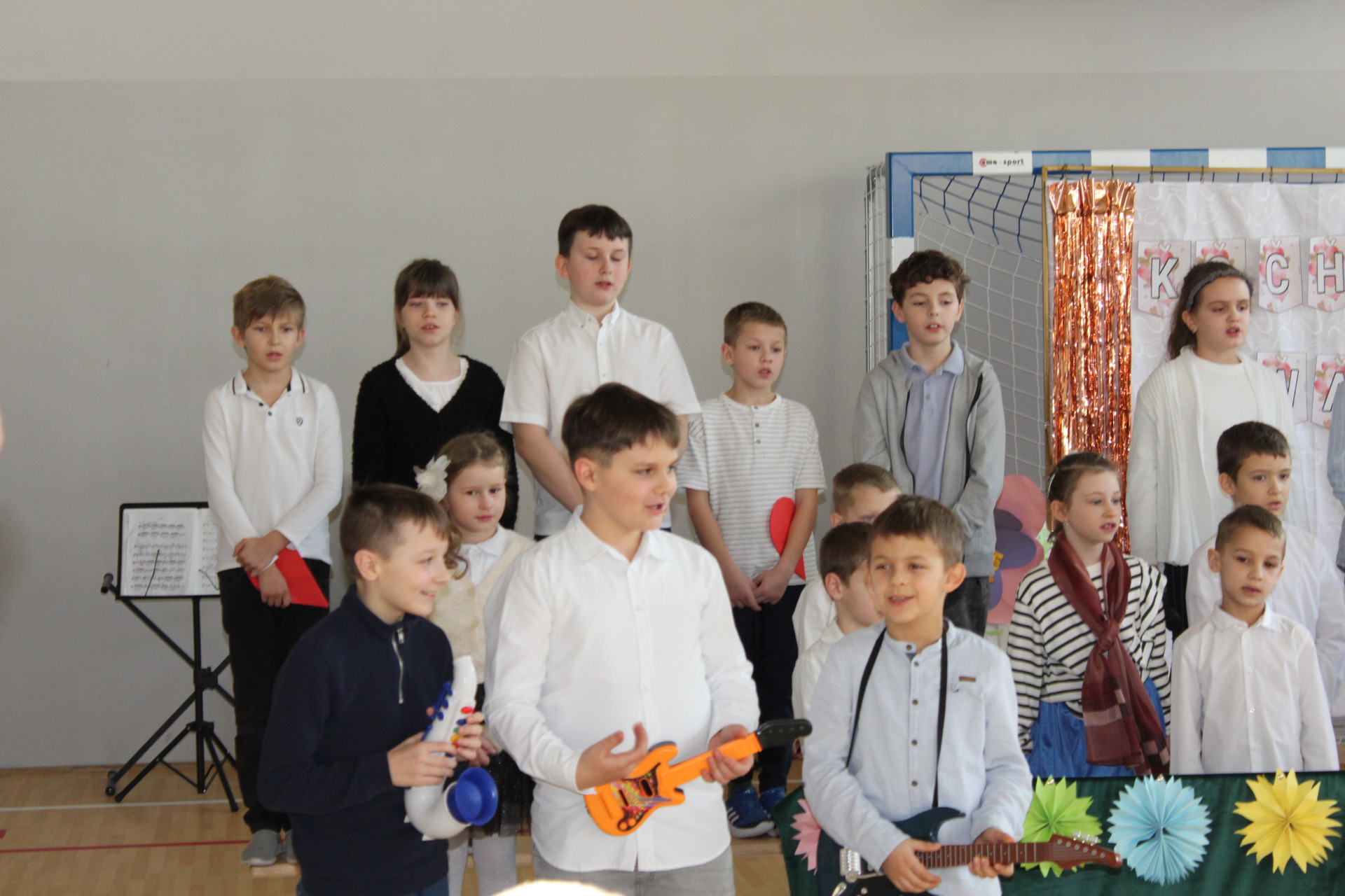 Dlatego w tym ważnym dniu uczniowie kl.1-3 przygotowali dla swoich Dziadków występ. Dzieci recytowały wiersze i śpiewały piosenki, które przepełnione były życzeniami i miłymi słowami kierowanymi do Dziadków. Nie zabrakło również gromkiego " Sto lat", pięknej gry na instrumentach : gitarze, flecie, skrzypcach. Dzieci oprócz umiejętności gry na instrumentach pokazały swoje umiejętności taneczne.