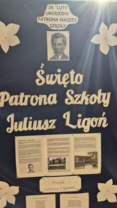 Juliusz Ligoń urodził 28 lutego 1823 roku we wsi Prądy. Był polskim pisarzem, poetą-kowalem, działaczem społecznym, niezwykłą osobowością, a także gorliwym patriotą. Nade wszystko kochał Śląsk i wielokrotnie to podkreślał zarówno w mowie jak i na piśmie. Nasz patron miał bardzo ciężkie życie. Niejednokrotnie był zwalniany z pracy za swoją propolską działalność. Pisał także sztuki teatralne, w których grały jego dzieci. Przez całe życie ciężko pracował i wychowywał sześcioro dzieci. Był odważnym człowiekiem. Ukrywał powstańców styczniowych, narażając swoje życie. Zmarł w 1899 roku w skrajnej nędzy, pozostawiając po sobie bogaty dorobek literacko-poetyki.