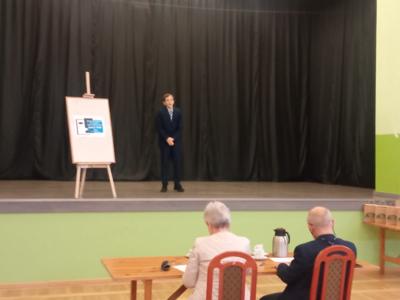 Dominik deklamował wiersz ,,Fotografia" Zbigniewa Herberta oraz fragment prozy J.R.R Tolkiena ,,Hobbit, czyli tam i z powrotem".