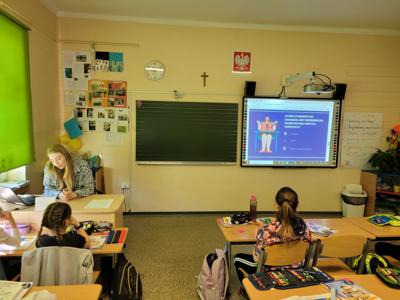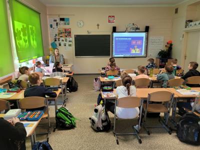 Dziś (19.03) uczniowie klasy III i IV uczestniczyli w zajęciach z dziennikarką- panią Sandrą Bruśniak, które odbyły się w ramach lekcji języka polskiego. Tematem spotkania było dziennikarstwo radiowe, a dzieci miały okazję dowiedzieć się, jak działa to medium, jak przygotowuje się audycje oraz jakie są zasady pracy radiowca. Podczas zajęć uczniowie poznali nie tylko tajniki pracy w studiu radiowym, ale także historię radia. Ponadto uczniowie mieli okazję poznać słownik dziennikarza oraz nauczyć się podstawowych pojęć związanych z pracą w mediach. Zajęcia były pełne praktycznych wskazówek i pozwoliły uczniom lepiej zrozumieć, jak powstają audycje radiowe i jakie umiejętności są niezbędne w pracy w tym zawodzie. W ramach zajęć dzieci uczestniczyły także w rozgrzewkach językowych, tzw. łamańcach językowych, które pomogły im poprawić wymowę oraz sprawność mówienia. Następnie uczniowie wzięli udział w quizie, sprawdzając swoją wiedzę na temat radia i dziennikarstwa. Na zakończenie obejrzeli film, który przybliżył im historię wynalazku Guglielmo Marconiego