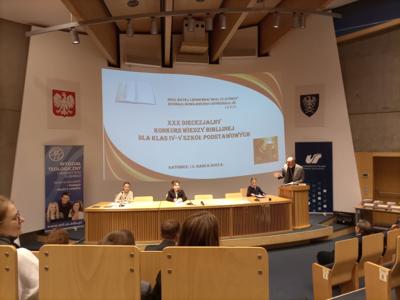 Dnia 13 marca uczennica naszej szkoły Maria Gęsty z klasy IV zajęła III miejsce w finale XXX Diecezjalnego Konkursu Wiedzy Biblijnej dla klas IV – V szkół podstawowych. W tym roku był to konkurs biblijny ze znajomości Ewangelii według św. Łukasza. Po pomyślnym przejściu przez etapy szkolny i rejonowy 49 uczniów z Archidiecezji Katowickiej brało udział w tym konkursie w Wydziale Teologicznym Uniwersytetu Śląskiego w Katowicach i nasza uczennica znalazła się na podium. Gratulujemy Marysi i życzymy dalszych sukcesów!