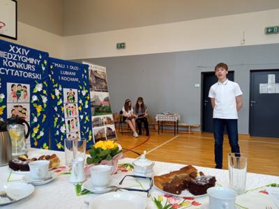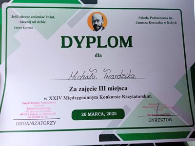 Nie możemy również zapomnieć o starszych uczniach! W kategorii klas 7-8 pierwsze miejsce zdobył Dominik Gembalczyk, a trzecie miejsce przypadło Michałowi Twardzikowi! Chłopcy pokazali wysoki poziom umiejętności recytatorskich i zasłużenie stanęli na podium.