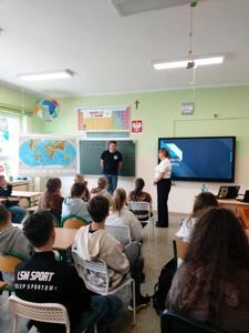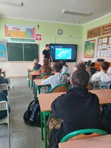 28 marca gościliśmy absolwenta naszej szkoły Mateusza Tomalę. Był on członkiem 46 wyprawy na Antarktydę w latach 2021-22. Polska Stacja ma imię Henryka Arctowskiego i mieści się na Wyspie Króla Jerzego. Została założona w 1977 i jest to jedyna stacja antarktyczna, na której badania prowadzi się przez cały rok. Pan Mateusz opowiadał uczniom o swoich codziennych obowiązkach, o długiej podróży statkiem, o bagażu, warunkach mieszkaniowych i zapasach jedzenia. Na Antarktydzie codzienne życie wymaga odporności fizycznej i psychicznej. Tutaj natura rządzi się swoimi prawami. Uczniowie z opowieści Pana Mateusza mogli się dowiedzieć na temat obowiązków pracowników stacji polarnej. Aby stacja mogła sprawnie funkcjonować, przebywają w niej specjaliści z różnych dziedzin, np. informatycy, biolodzy, mechanicy, kucharze. Głównym zadaniem naukowców tam przebywających jest wykonywanie wszelkiego rodzaju pomiarów, pobieranie próbek, a następnie ich analizowanie w laboratorium. On sam był odpowiedzialny za konserwację wszystkich maszyn oraz zarządzał sprzętem przeciwpożarowym. Nasz gość opowiadał również o warunkach pogodowych, roślinności i zwierzętach żyjących na obszarze Antarktyki. Swoją opowieść ubarwiał licznymi fotografiami.