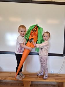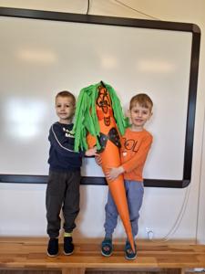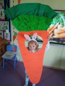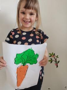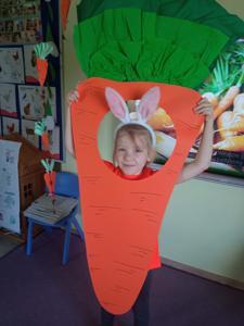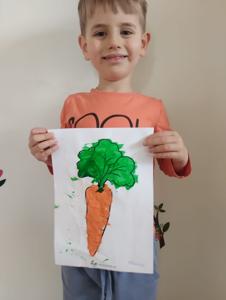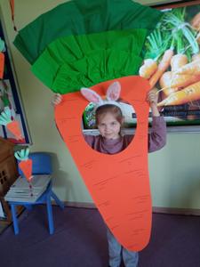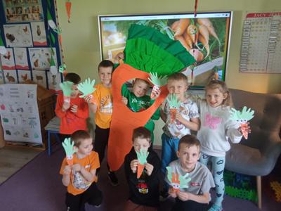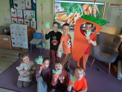 7 kwietnia świętowaliśmy w przedszkolu Dzień Marchewki . Marchewka to warzywo smaczne, zdrowe i lubiane chyba przez wszystkich. Dzieci poznały wspaniałe właściwości tego warzywa , bo to najbogatsze źródło beta- karotenu (prowitaminy A), który stymuluje prawidłowy wzrost ,poprawia widzenie. Dzięki dużej zawartości kwasu foliowego, błonnika i witamin z grupy B korzystnie wpływa na nasz układ nerwowy. Tego dnia marchewka była głównym bohaterem gier i zabaw plastycznych. Zajęcia zakończyliśmy słodkim akcentem – degustacją marchewkowego ciasta popijając sokiem również z marchewki.