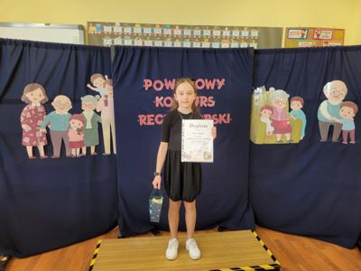 Naszą szkołę godnie reprezentowała Lena Kołek, uczennica klasy III, która zaprezentowała wiersz Danuty Wawilow „A jak będę dorosła”. Jej występ, pełen emocji i zaangażowania, spotkał się z ciepłym przyjęciem publiczności. Lena pokazała nie tylko talent recytatorski, ale również odwagę i pasję, które z pewnością będą jej towarzyszyć w dalszej edukacyjnej drodze.