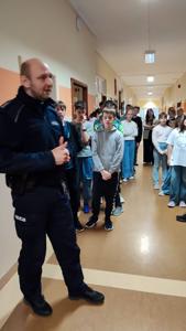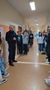 Spotkanie miało formę interaktywną – uczniowie chętnie zadawali pytania i dzielili się swoimi doświadczeniami. Wiele emocji wzbudziły przykłady z codziennej pracy policjanta, które pokazały, jak niewłaściwe zachowania mogą prowadzić do groźnych sytuacji.