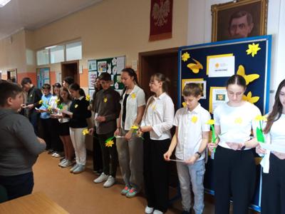 16 kwietnia nasza szkoła włączyła się w obchody upamiętniajace 82. rocznicę Powstania w Getcie Warszawskim, angażując się w akcję społeczno-edukacyjną ,,Żonkile,,.