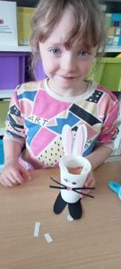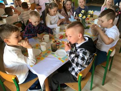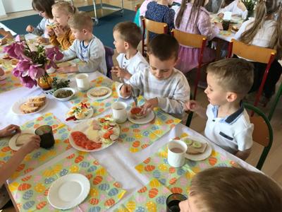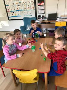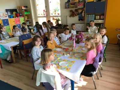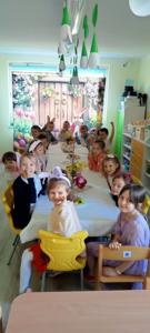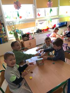 Ciekawą formą zajęć były warsztaty, na których dzieci formowały, wycinały i lepiły z gliny. W efekcie powstały piękne kurki, które będą ozdobą wielkanocnego stołu .Przedszkolaki chętnie wykonywały ozdoby świąteczne - malowały jajka metodą dekupażu, robiły zajączki ze skarpety, pojemniczki na rzeżuchę, kurczaczki, uczestniczyły w zajęciach o tematyce wielkanocnej. Poprzez doświadczenia dzieci poznały budowę jajka i związaną z nim symbolikę. Spędzony wspólnie czas był okazją do nauki nowych piosenek i wierszyków.