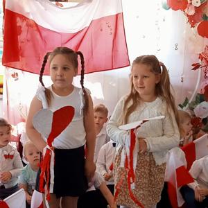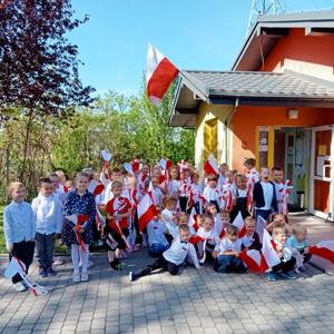 30 kwietnia odbył się także uroczysty apel z okazji obchodów Świąt Majowych. Dzieci w tym dniu przyszły do przedszkola ubrane na galowo. Każdy miał w ręku symbol narodowy. Dzieci z godnością zaśpiewały Hymn Narodowy „Mazurek Dąbrowskiego”, a także „Witaj majowa jutrzenko” i „Polak Mały”. Mali Patrioci pochwalili się również znajomością „Katechizmu Małego Przedszkolaka” i wiersza „Barwy Ojczyste”. Głównym celem akademii było wyrobienie u dzieci postaw patriotycznych, szacunku do symboli narodowych oraz dziedzictwa kulturowego i historycznego naszego kraju.