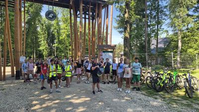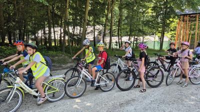 W dzisiejszy poranek dwie klasy naszej szkoły - 5 i 6 wyruszyły na wycieczkę rowerową do pobliskiej zagrody żubrów. W zagrodzie uczniowie mogli z bliska podziwiać żubry - potężne zwierzęta, które spokojnie pasły się na ogrodzonym terenie. Po przyjemnym spacerze w cieniu drzew wróciliśmy do szkoły zatrzymując się po drodze na lody.