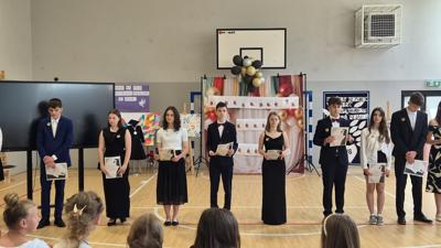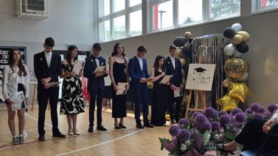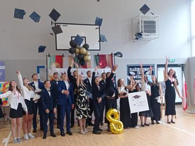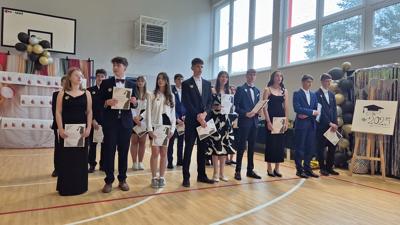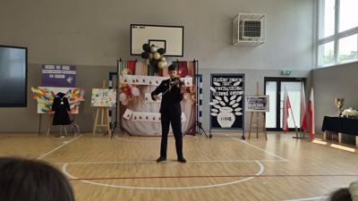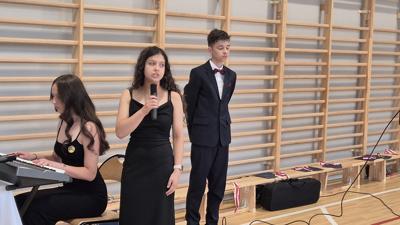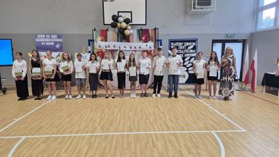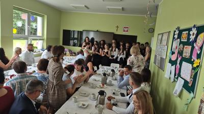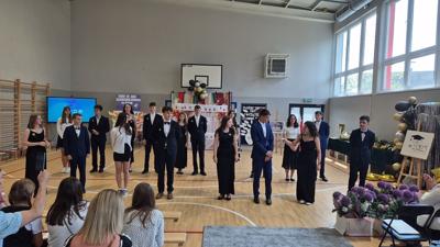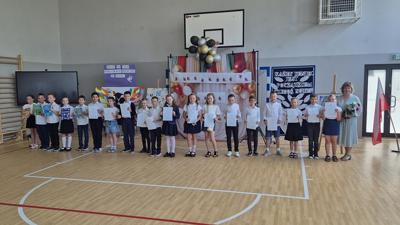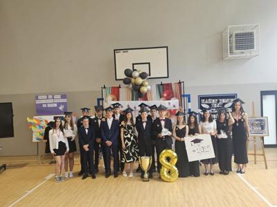 Klasa VII przygotowała wyjątkowe pożegnanie dla swoich starszych kolegów i koleżanek. Uczniowie klasy VII, żegnając starszych kolegów, zaprezentowali spersonalizowane wiersze dedykowane każdemu Absolwentowi oraz wręczyli im medale z napisem ,,Super Absolwent". Sami Absolwenci również przygotowali wzruszający program pożegnalny. Śpiewali piosenki okolicznościowe oraz dzielili się swoimi wspomnieniami o nauczycielach i szkole. Uczeń klasy VIII-Filip Adamicki, wykonał pożegnalny koncert na skrzypcach, zachwycając wszystkich swoim kunsztem gry na tym instrumencie. Były to chwile pełne śmiechu i łez, które na długo pozostaną w pamięci wszystkich obecnych. Ósmoklasiści podziękowali także Dyrekcji, swojej wychowawczyni Pani Barbarze Podsiadło, całemu Gronu Pedagogicznemu oraz pracownikom szkoły za opiekę, zaangażowanie i trud włożony w wychowanie.