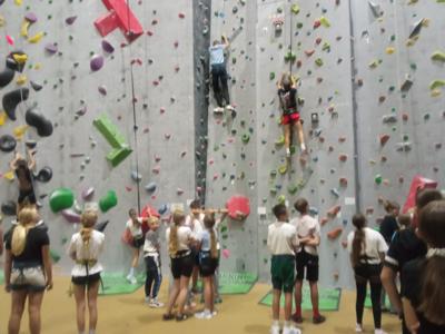 Pierwszym punktem programu była wizyta w gliwickiej „Chwyciarni” Arena Gliwice, gdzie nasi uczniowie próbowali swoich sił i możliwość na ściankach wspinaczkowych o różnych stopniach trudności. Była to świetna okazja, aby przełamać swój strach i lęk oraz dobrze się bawić.