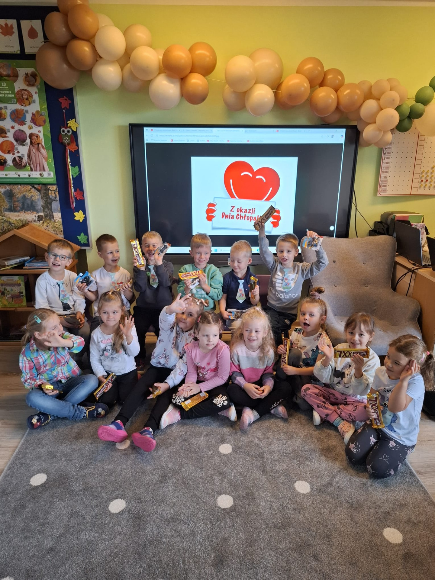 30 września w naszym przedszkolu mieliśmy wyjątkową okazję do wspólnego świętowania - Dzień Chłopaka. To był dzień pełen radości, uśmiechów i dobrej zabawy. Dziewczynki wraz z paniami składały chłopcom serdeczne życzenia i śpiewały „Sto lat”. Każdy chłopiec został obdarowany upominkiem oraz słodkościami. Na dzieci czekały także zabawy integracyjne, konkursy, gry, taniec przy ulubionej muzyce oraz czas na wspólne oglądanie bajek. Ten dzień był świetną okazją do budowania więzi oraz spędzenia wspólnie czasu w miłej atmosferze.