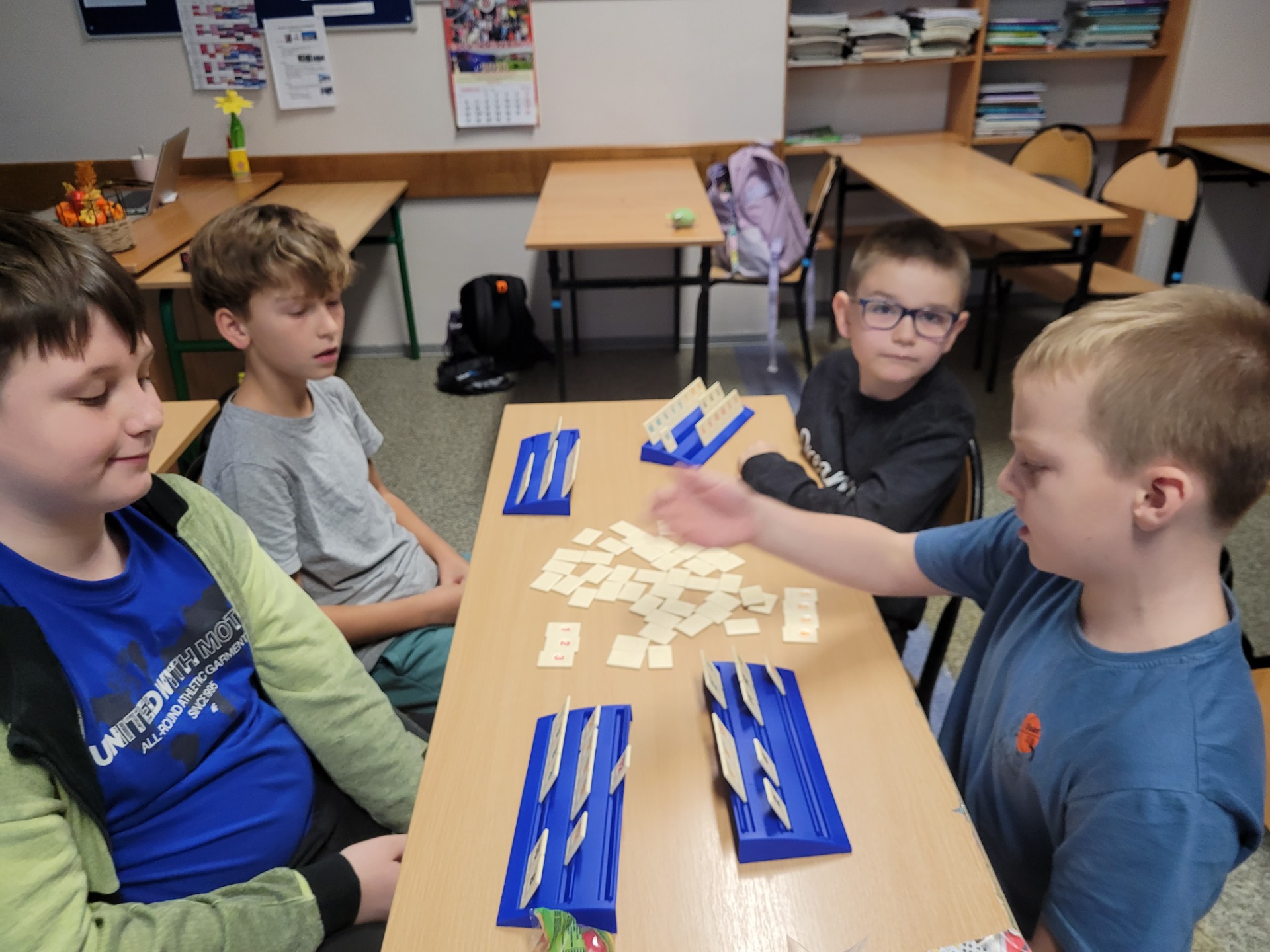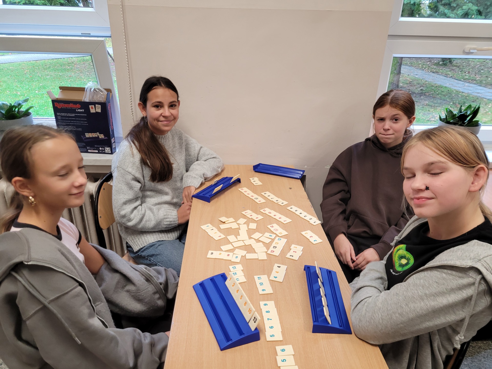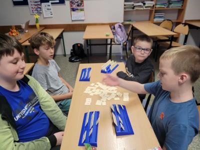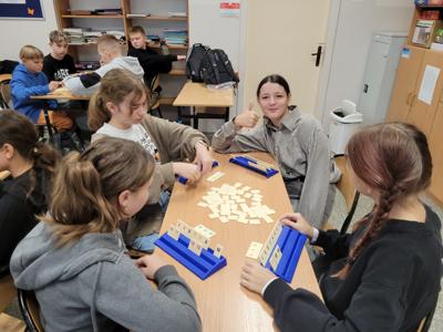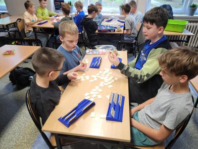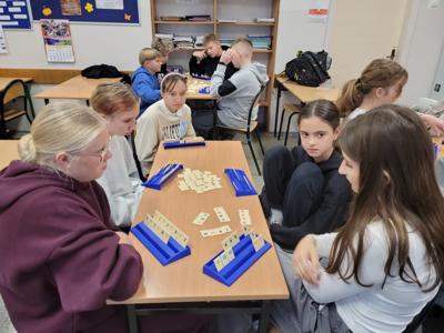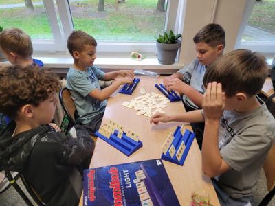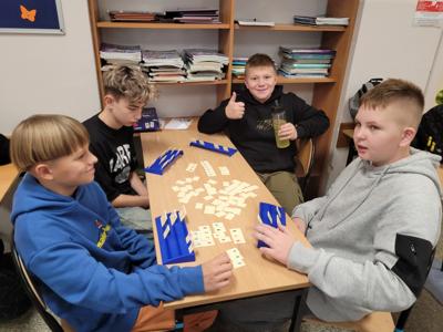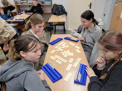 Z kolei uczniowie z klas 4 i 7 zmierzyli się w emocjonujących rozgrywkach w Rummikub. Gra ta wymaga nie tylko szczęścia, ale przede wszystkim logicznego myślenia, planowania i przewidywania ruchów przeciwnika. Wspólne granie zintegrowało uczniów i pozwoliło im spędzić czas w miłej, pełnej emocji atmosferze.