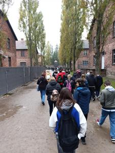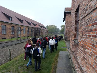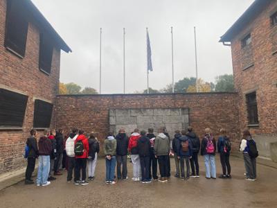 Ściana śmierci – miejsce egzekucji tysięcy osób, przy którym uczniowie oddali hołd ofiarom.
