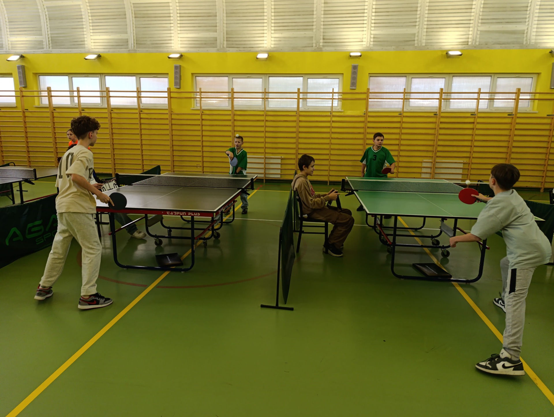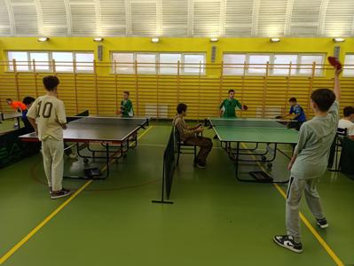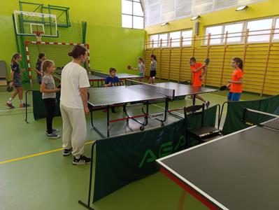 W rozgrywkach powiatowych w tenisie stołowym uczennice klasy 6 — Liliana Gatnar i Eliza Gatnar — zaprezentowały znakomitą formę, zdobywając I miejsce i awansując do etapu rejonowego. W rywalizacji chłopców z klasy 4 — Tomasz Kocur i Paweł Duda — po zaciętych meczach uplasowali się na IV miejscu, pokazując ogromne zaangażowanie i ducha walki.