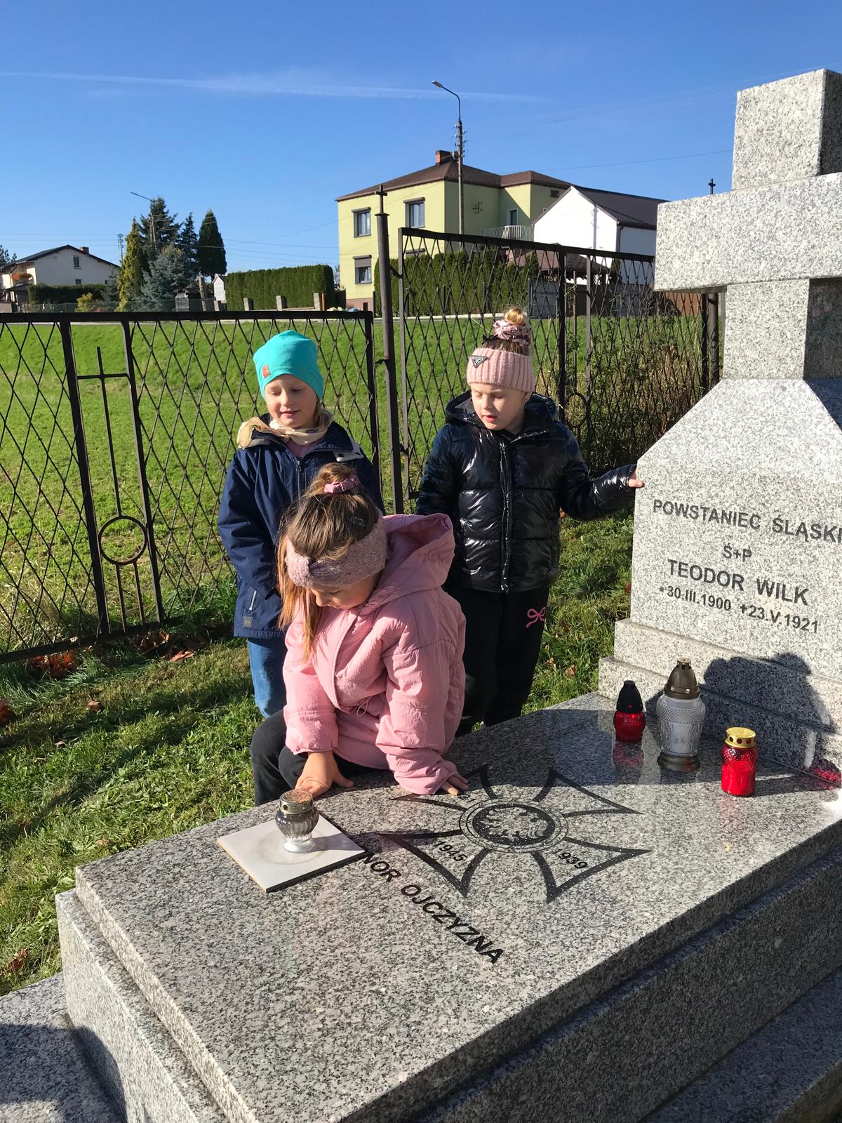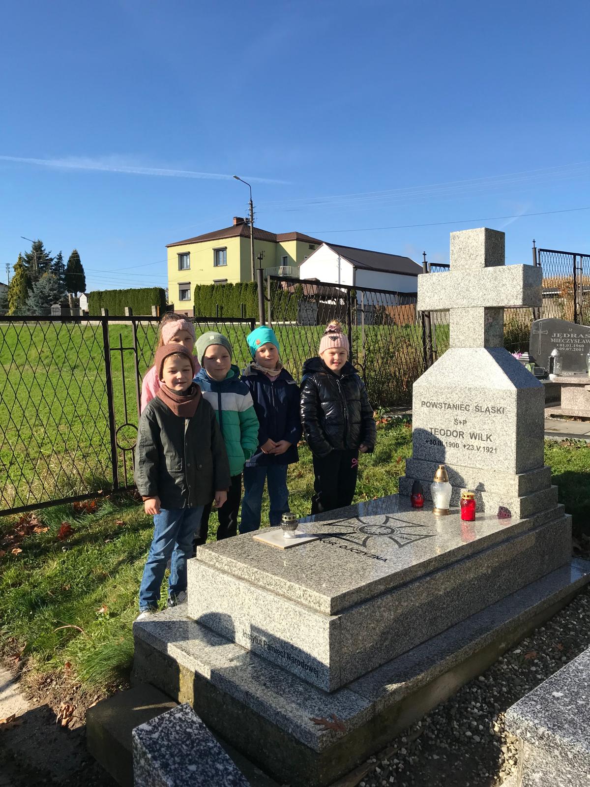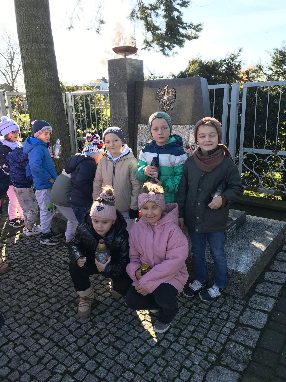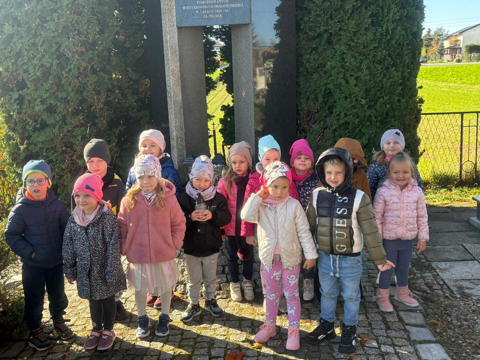 Dzieci z naszego przedszkola odwiedziły cmentarz w Pogrzebieniu, aby zapalić znicze i uczcić pamięć osób,które zapisały się w historii naszej miejscowości. Podczas spaceru przedszkolaki zatrzymały się przy pomniku powstańca śląskiego Teodora Wilka, który walczył o wolność Górnego Śląska w czasie III Powstania Śląskiego. Następnie odwiedziły pomnik upamiętniający dzieci – ofiary niemieckiego obozu Polenlager 82działającego w Pogrzebieniu podczas II wojny światowej. Dzieci w ciszy i skupieniu zapaliły znicze, oddając hołd wszystkim, którzy cierpieli i poświęcili swoje życie dla ojczyzny. Nauczycielki opowiedziały im o wydarzeniach, które miały miejsce w ich miejscowości wiele lat temu. Wyjście to stało się cenną lekcją historii, szacunku i pamięci o bohaterach. Przedszkolaki dowiedziały się, że takie miejsca pomagają nam zrozumieć przeszłość i uczyć się patriotyzmu. To wzruszające spotkanie z historią na długo pozostanie w pamięci najmłodszych.