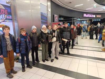 Z kolei starsze klasy, wybrały się na projekcję filmu "Uwierz w Świętego Mikołaja 2". Ta świąteczna komedia opowiada o przygodach kilkuletniej dziewczynki, która chcąc wyprosić zdrowie dla chorej babci, wybrała się samotnie do Warszawy, prosić Mikołaja o spełnienie tego życzenia.