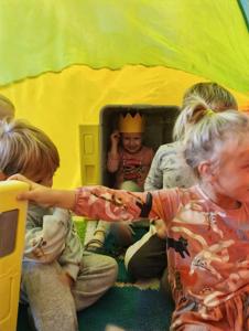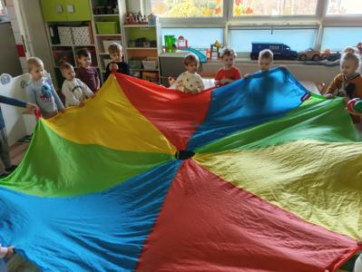 Zajęcia sportowo-rekreacyjne realizowane w ramach projektu „Uczę się i bawię” – wsparcie edukacyjne przedszkolaków z ZSP w Pogrzebieniu prowadzone są od ubiegłego roku szkolnego do końca bieżącego roku. Ich głównym celem jest promowanie zdrowego stylu życia oraz kształtowanie u dzieci potrzeby codziennej aktywności fizycznej już od najmłodszych lat. Podczas zajęć „Gimnastyka dla Smyka” dzieci uczestniczą w różnorodnych zabawach ruchowych, które wspierają prawidłowy rozwój fizyczny i emocjonalny. Wykorzystywana jest m.in. chusta animacyjna, która sprzyja integracji grupy, współpracy oraz rozwijaniu koordynacji ruchowej. Ćwiczenia ruchowe pomagają w doskonaleniu motoryki dużej, zręczności oraz orientacji w przestrzeni. Zajęcia prowadzone są w formie atrakcyjnych zabaw, dzięki czemu dzieci uczą się poprzez ruch i radość.