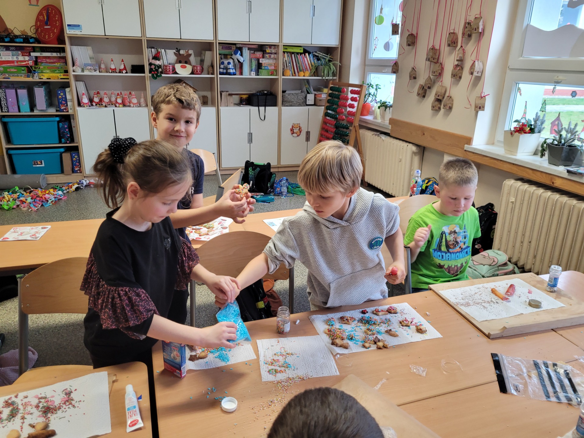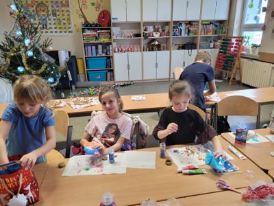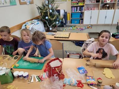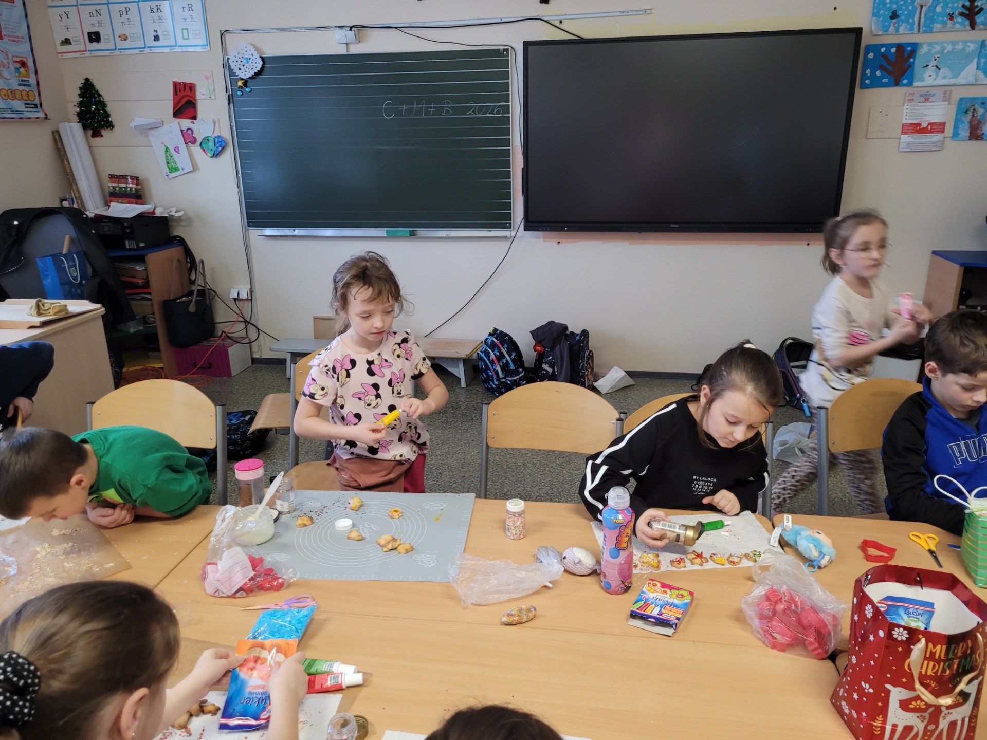Już od samego rana dzieci z ogromnym entuzjazmem przystąpiły do pracy. Pod czujnym okiem wychowawczyni mali cukiernicy wałkowali ciasto, wykrawali foremkami gwiazdki, serduszka, choinki i aniołki, a następnie z niecierpliwością czekali na moment dekorowania. Kolorowe lukry, posypki, czekolada i cukrowe ozdoby sprawiły, że każde ciasteczko stało się małym dziełem sztuki.