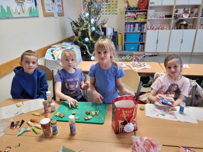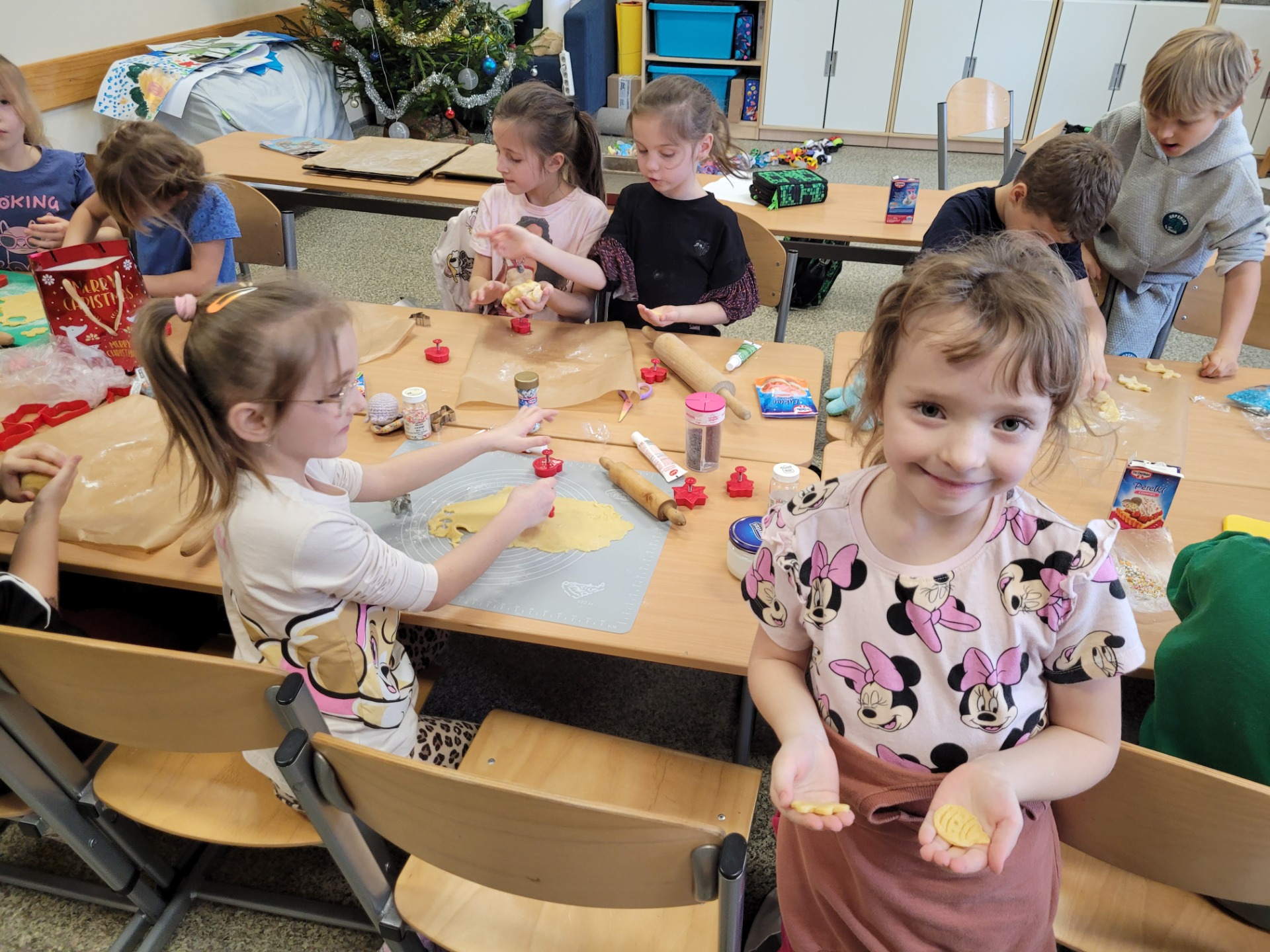 Podczas zajęć dzieci nie tylko świetnie się bawiły, ale także uczyły się współpracy, cierpliwości oraz dbałości o porządek na stanowisku pracy. Wspólne pieczenie było doskonałą okazją do rozmów o tradycjach bożonarodzeniowych i przygotowaniach do świąt w domach rodzinnych.