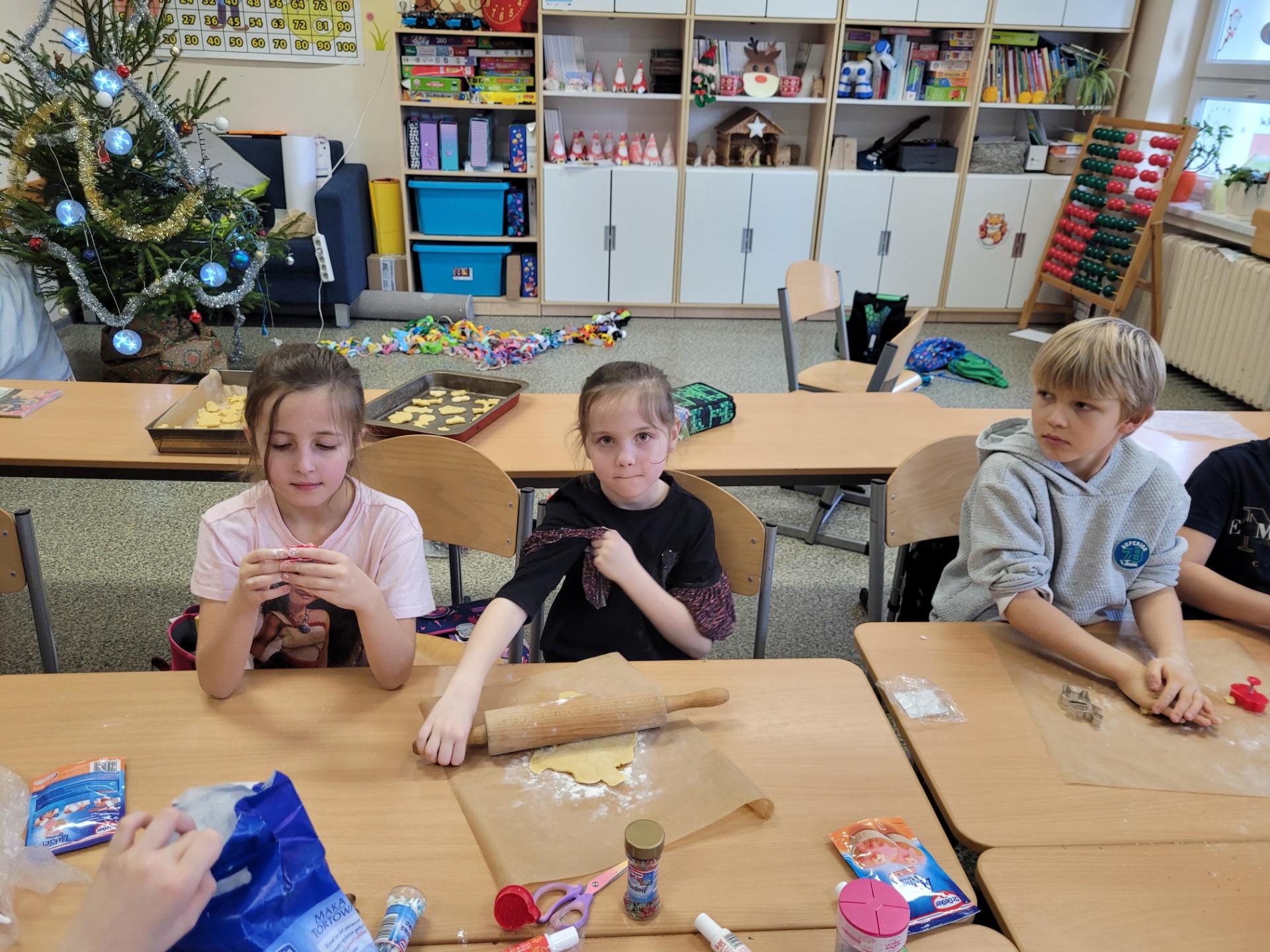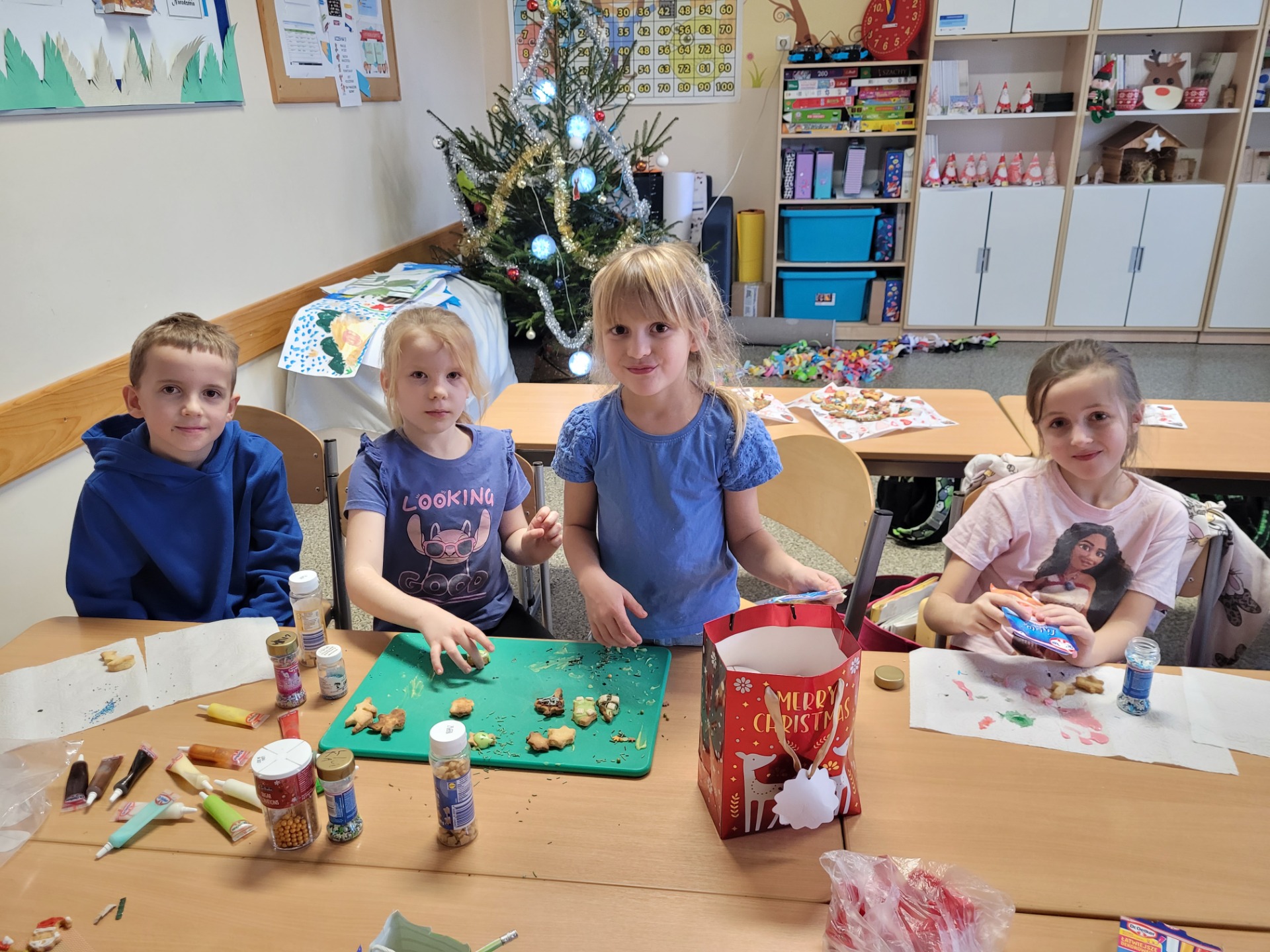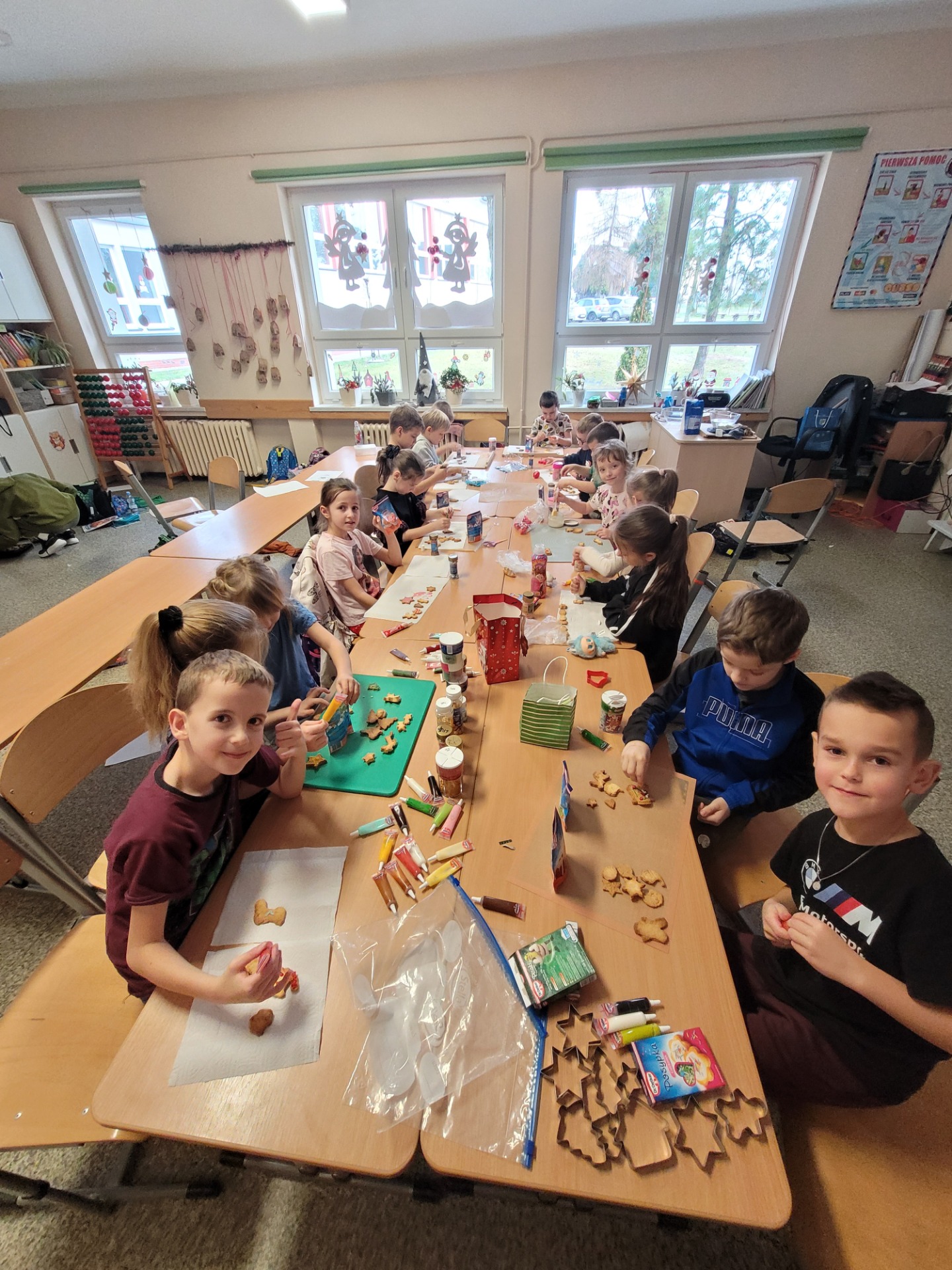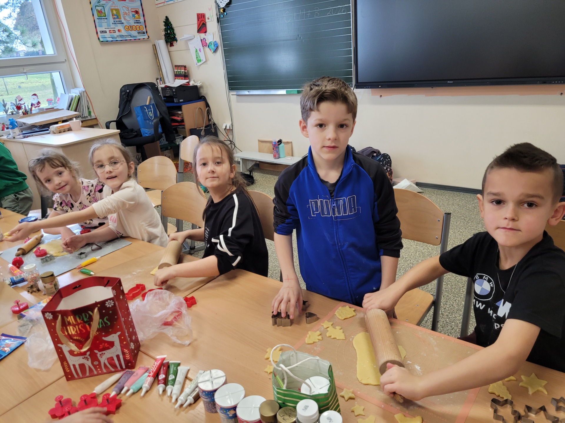 Zapach świeżo upieczonych ciasteczek wypełnił szkolny korytarz i wprowadził w świąteczny nastrój.🌲 Pierwszoklasiści życzą Świąt Bożego Narodzenia pełnych radości i zdrowia🌲