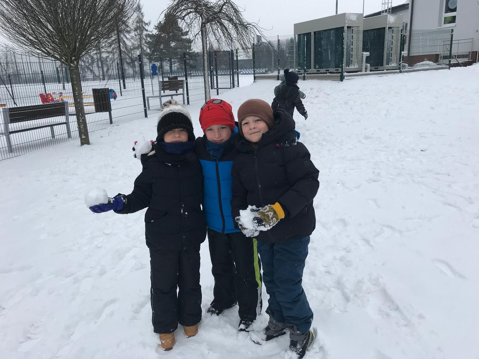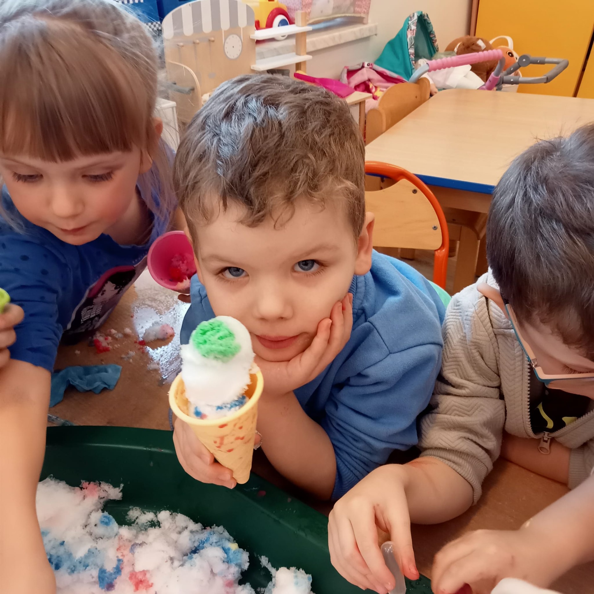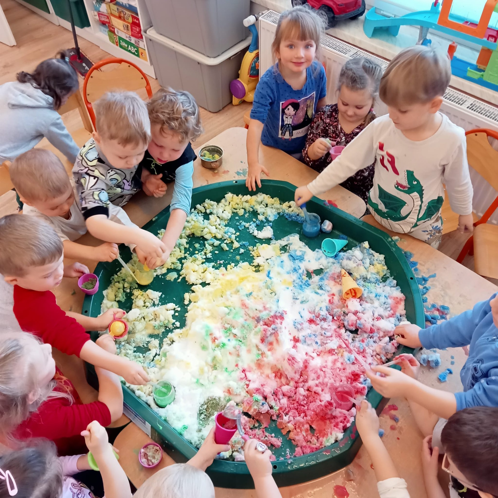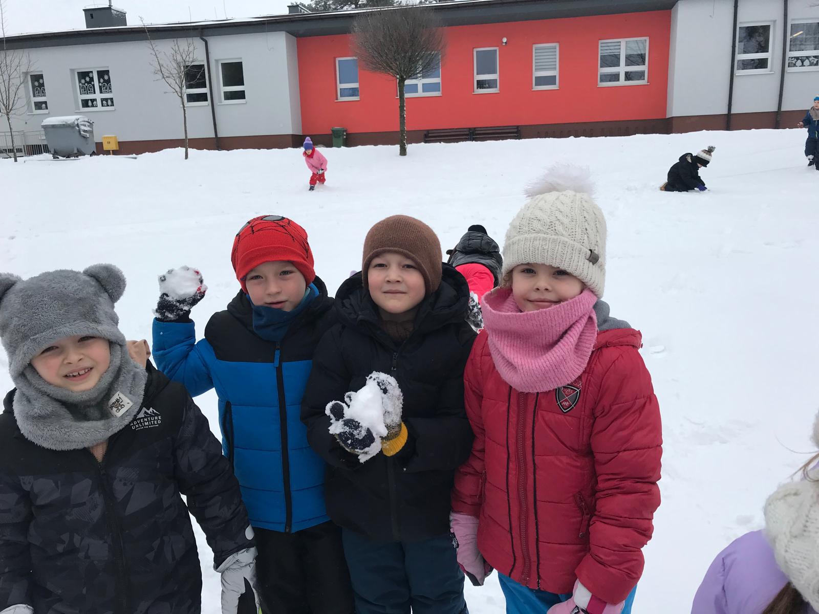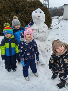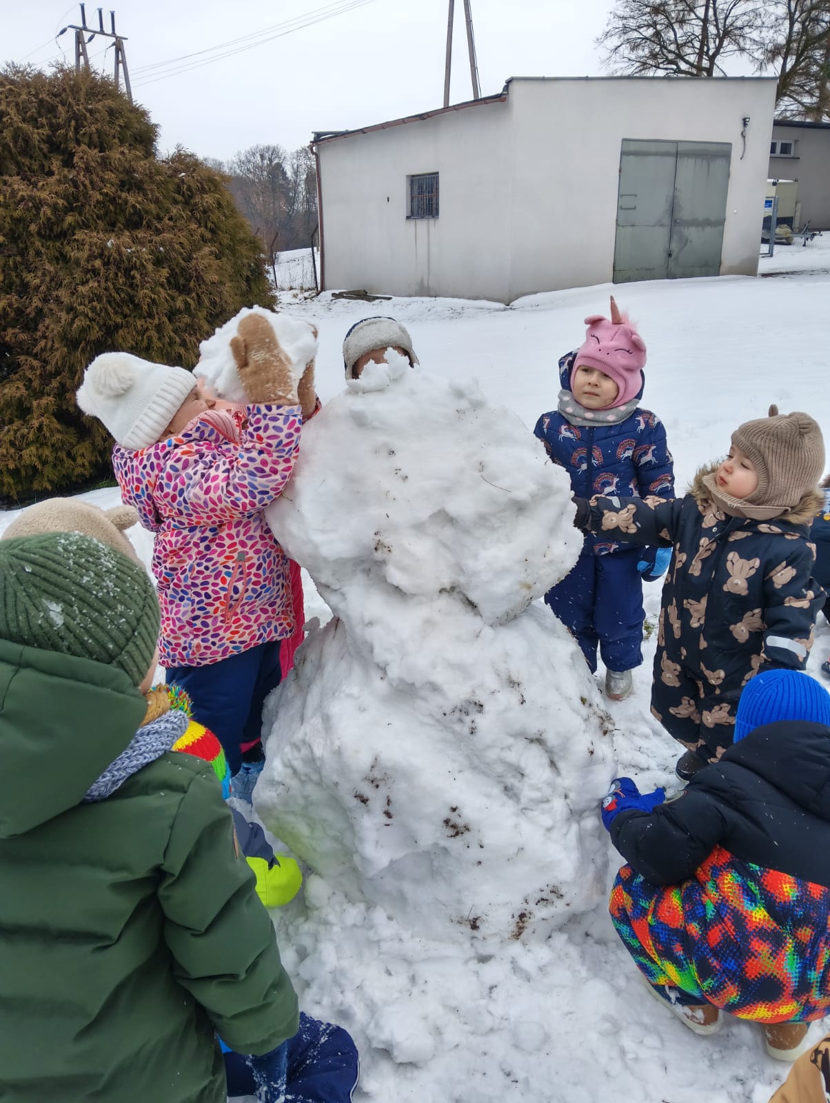Zima to wyjątkowy czas, który dostarcza dzieciom wielu radosnych chwil. Korzystając z uroków zimowej aury, nasze przedszkolaki bawiły się na świeżym powietrzu, lepiąc bałwany, śnieżki oraz tworząc aniołki na śniegu. Zimową tematykę kontynuowaliśmy także w sali, gdzie dzieci miały możliwość eksperymentowania ze śniegiem. Był to czas pełen radości, uśmiechu i twórczych doświadczeń.