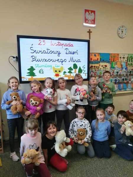 Pluszowy niedźwiadek stał się nieodłącznym towarzyszem zabaw,...